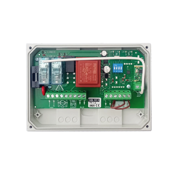 Elle intègre un récepteur radio multifréquence (433,92÷868,3 MHz) capable de mémoriser des télécommandes à code fixe.