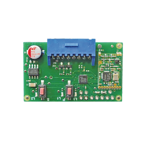 Il connettore integrato consente l’uso dei principali moduli radio a 433,92 MHz o 30,900 MHz.